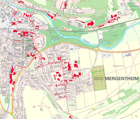Auf der Karte sehen Sie das Wärmenetz in Bad Mergentheim.